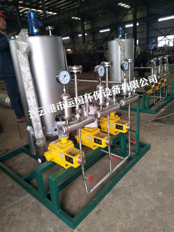 加藥裝置通過不同的工藝設計,精確配置各類固體和液體的化學藥品的溶液,再用計量泵準確投加,以達到各種設計要求。如除垢、除氧、混凝、加酸、加堿等。
